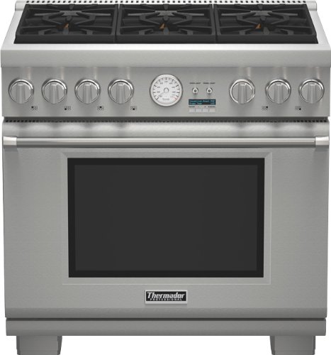 !±8± THERMADOR 36" Pro-Style Gas Range with 6 Sealed Burners, 22,000 BTU Power Burner, ExtraLow Simmers,...